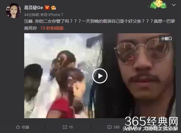 结果,没过多久,葛荟婕又将这条微博删掉了,发了个视频,表示汪峰一天到晚假装自己是个好父亲,真想一巴掌扇死他。