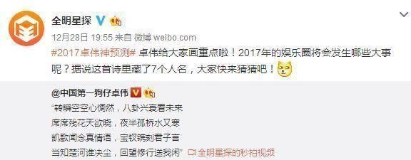 最后,卓伟的诗又来了,据说这一首诗里藏着七个他要爆料的明星,你能猜到他们是谁吗?