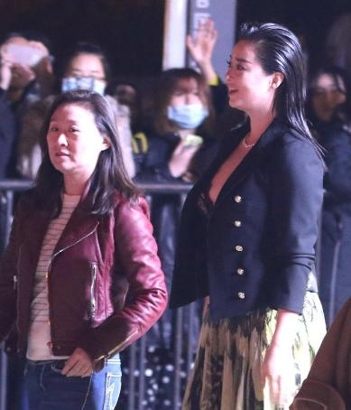 侧面照不难看出深V礼服脱掉外套后,丰满的上围肯定十分吸睛,但这头发是几天没洗了,都结块了,我的娘娘。