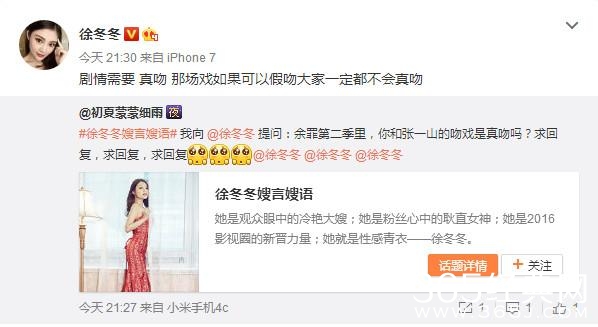 徐冬冬说真吻是剧情需要,如果可以假吻,大家一定不会真吻!