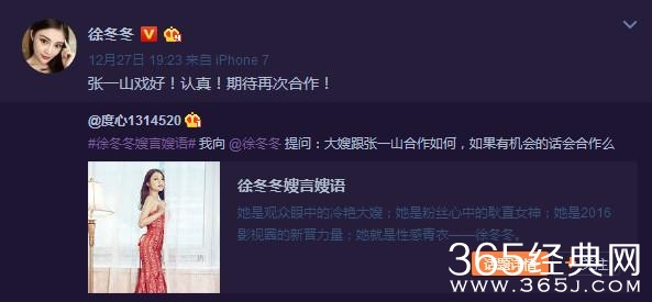 徐冬冬说,张一山戏很好,希望能与他再次合作!