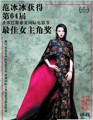 然后呢,到2016年,范冰冰又在冯小刚执导电影《我不是潘金莲》获得第64届圣塞巴斯蒂安电影节“最佳女主角”银贝壳大奖 。不过呢,小编还没看过,不知剧情如何!都拿奖了,应该是不错的!