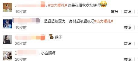 也有网友说:超级漂亮的古力娜扎。还有网友看照说古力娜扎小蛮腰。