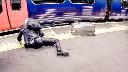 小编不说,你们肯定猜不到是谁吧。这是郑爽爽妹子,在《花儿与少年》的时候,她拉着行李箱去追车,不幸摔倒了,行李箱都飞出去的,肯定是超级疼的。