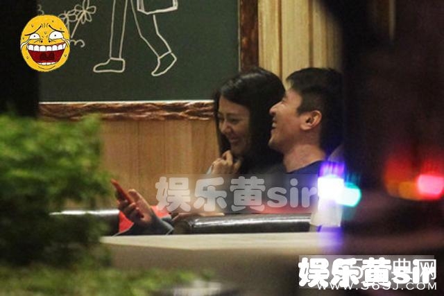 高圆圆(左)拿手机和赵又廷分享趣闻,两人笑成一块,感情如胶似漆。