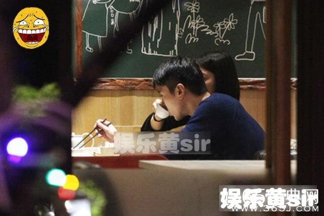 夫妻俩外出吃消夜,赵又廷(前)拿筷夹菜,娇妻高圆圆在旁喂他喝茶。