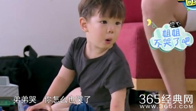 然后贾乃亮开始安慰甜馨,嗯哼也开始不哭了
