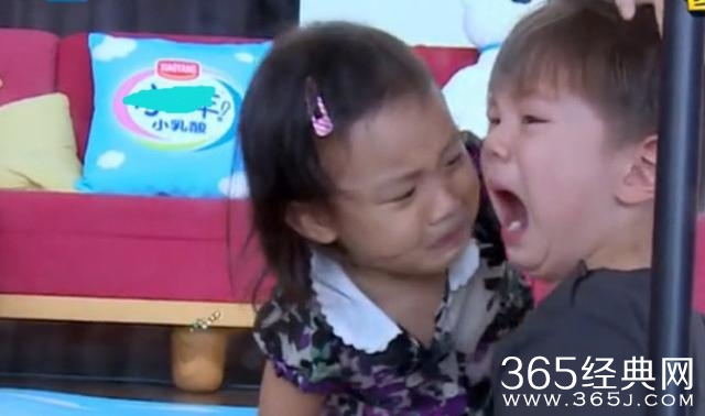 但是嗯哼还是大哭中,这个时候,甜馨开始很内疚一样,摸着嗯哼的脸,自己也很想哭了。