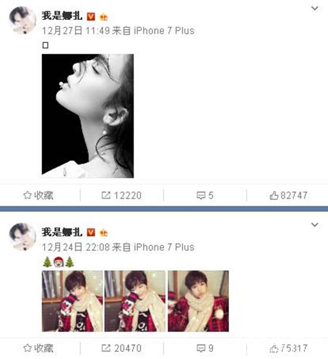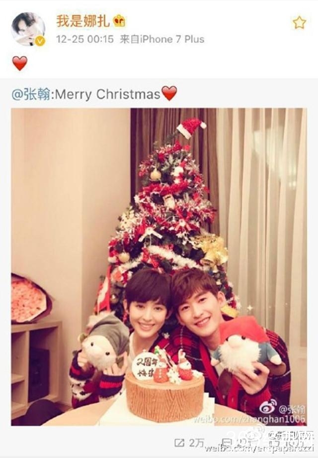 但是有眼尖的网友发现,之前娜扎和张翰在圣诞节公开秀恩爱的照片没有了。