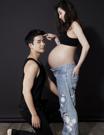 玄子,玄子和他老公拍的孕照,玄子怀孕后人还是一样瘦,但是感觉肚子好大啊,值得一提的是,玄子老公蛮帅的。