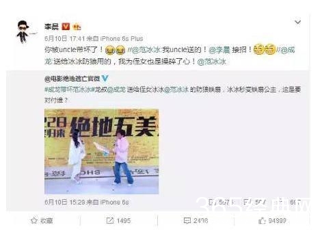 成龙多次揩油范冰冰,李晨直接发微博警告!