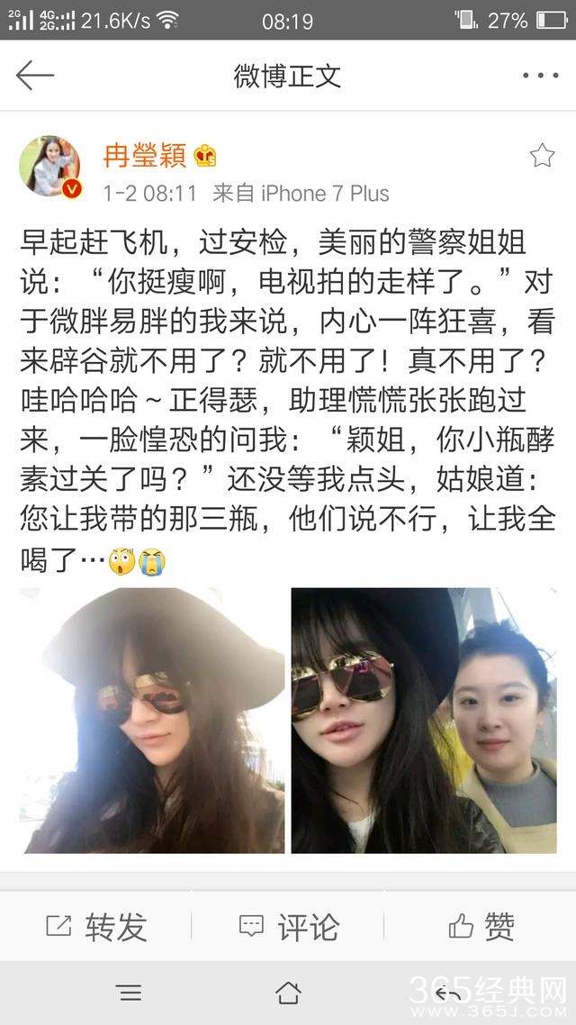 不过你这大清早就被人夸瘦了应该很高兴吧,让助理带的三瓶酵素也不能带进去,表示伤心,然而最好玩的还是居然被她喝掉了,不得不承认这个助理还蛮实在