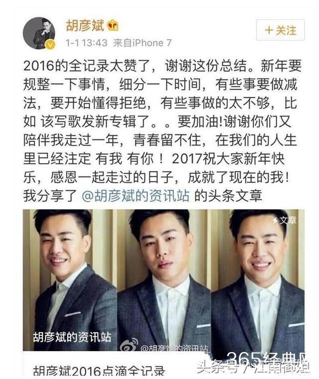 元旦第一天,胡彦斌竟然发微博了,哎,看来这个我死活不相信的新闻现在没办法不承认了,分手了还复合,小爽你怎么想的?