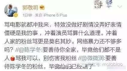 无独有偶,当冬冬演技被质疑,粉丝跟着被喷的时候,四爷立马出面回应:有本事冲我来,冲着演员和粉丝骂算什么道理?