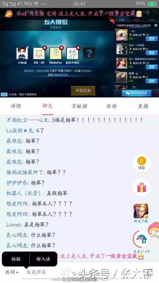近日,杨幂应某好友主播一起闲来无事玩几把王者荣耀并且是全程直播。全能的网友也在排位的时候把在直播的大幂幂给逮了个正着。