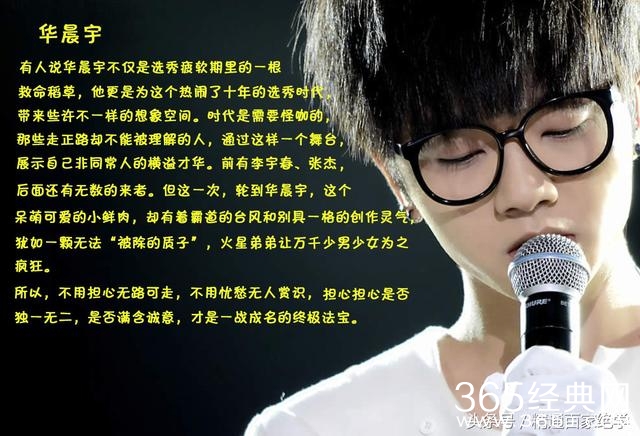 2、席上残花天欲晓:有很多人猜测这句是鹿晗,其实则不然,原因很简单,因为在节目里鹿晗已经被提到过几次了,并且卓伟自己也承认了这句说的不是鹿晗;卓伟是天津人,“席上”其实谐音“十上”,在理解不了去找个大舌头的让他读读十。那么十上残花就是华字,“天欲晓”就好理解了,晨宇拆开字来解可为早晨的天空,所以第二句华晨宇无疑。