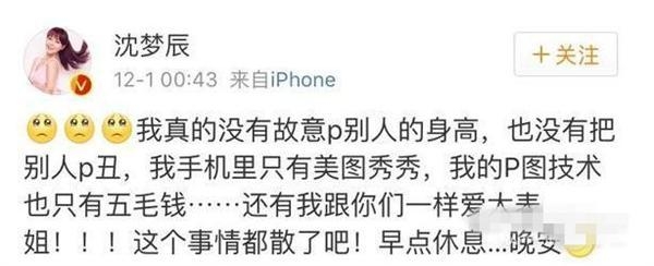 不过即使沈梦辰表现的再好,就像她在《火星情报局》里总结的那样,回顾2016年她就是一个字“黑”啊。先是和大表姐刘雯参加完节目后合照,女生想晒自己美美照片的心情可以理解,不过晒合照只P自己真的是大忌啊,P图成瘾的沈梦辰把自己P得和大表姐一样高。