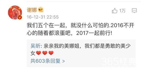 谢娜的评论说:只要我们五个一直在一起,2017年会更好。很暖心又引人遐想,这是表示无论发生什么,五个人都会同进退的意思吗?
