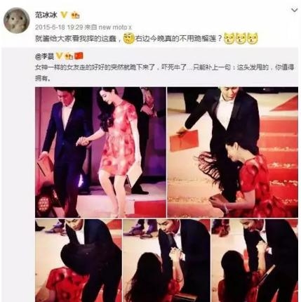 但是到了李晨微博里画风突变,女神范冰冰瞬间变成大屁股菜场大妈。这样的男朋友,范爷你确定回家以后不打一顿吗?