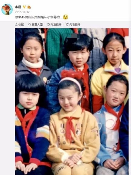李晨还在微博上晒出范爷的旧照吐槽,原来45低头拍照从小培养的。大黑牛你这么大胆,就不怕回家范爷让你跪榴莲吗?