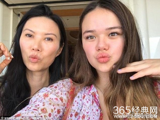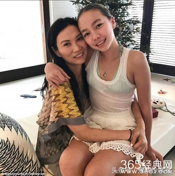 邓文迪与前夫默多克生的两个女儿15岁的Grace和13岁的Chloe也温馨同行,母女拍照合影,气氛融洽如姐妹。