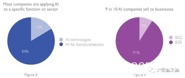 10家AI公司中有9家主攻“B2B”,为其他企业开发和销售解决方案(下图3)。 只有1/10的公司是直接销售给消费者('B2C')。
