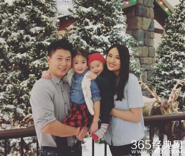 圣诞树下一家人的合影,李小鹏真的是人生赢家,有儿有女真是幸福!