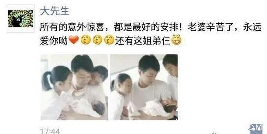 佟家三公子是去年2016年5月初出生的,当时,佟大为还在微博写下了幸福的感言:所有的意外惊喜,都是最好的安排!老婆辛苦了,永远爱你哟还有这姐弟仨!