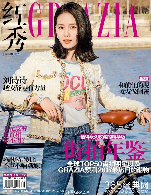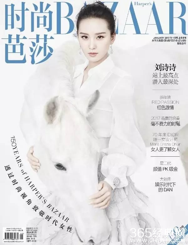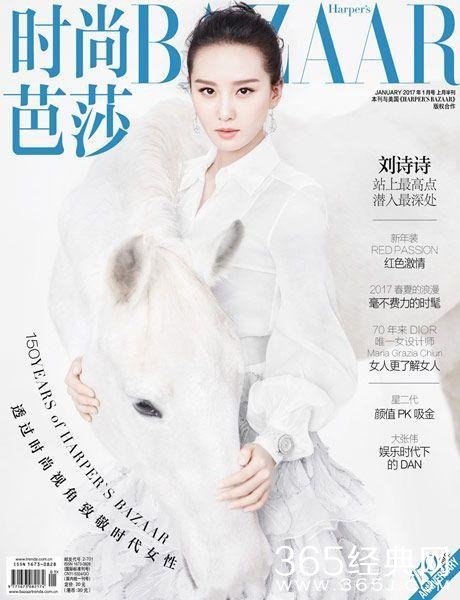 刚刚拿到时尚芭莎2017开年封的诗诗▼