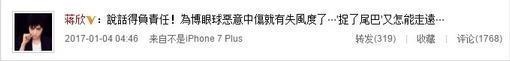 近日,卓伟曝出L姓女星陪睡制片人,刘涛又躺枪。1月4日上午,蒋欣发文称:“说话得负责任!为博眼球恶意中伤就有失风度了……”有网友揣测蒋欣该微博疑似痛斥卓伟在年底爆料中的言论,力挺刘涛。