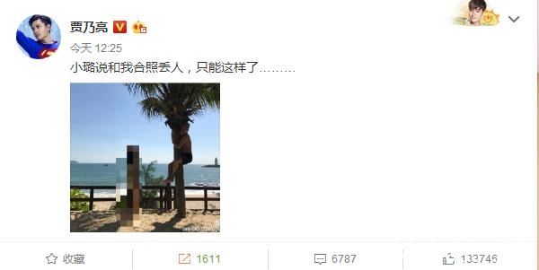 李小璐这是宁愿被马赛克也不愿意和贾乃亮合照啊,所以贾乃亮只能自己爬树去了!
