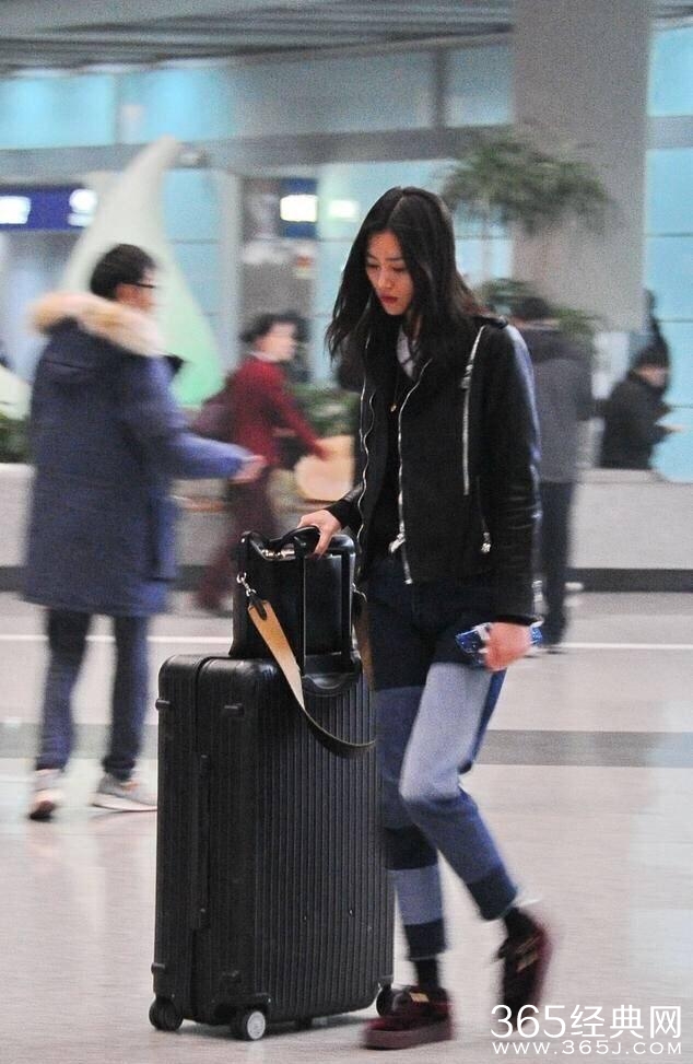 刘雯自己推着行李箱,走得大步流星。但是整个人看起来就是有一种莫名的憔悴。