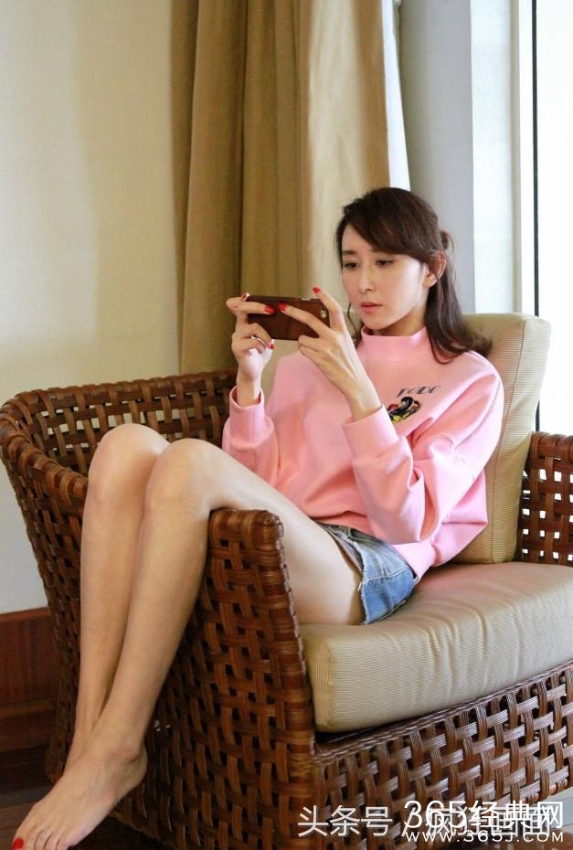 胡静坐在一个竹制的沙发上,双腿放在扶手上,而自己津津有味的玩着手机的游戏,而网友注意的却是这两条大长腿,具体玩什么游戏,我们也无从而知。