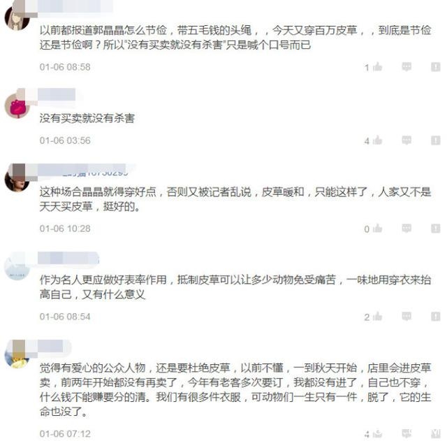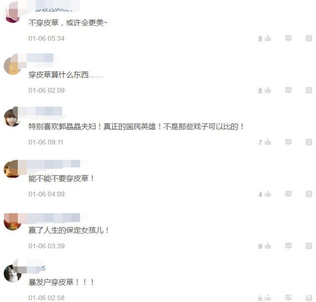 不过,对于郭晶晶穿皮草网友颇有争议: