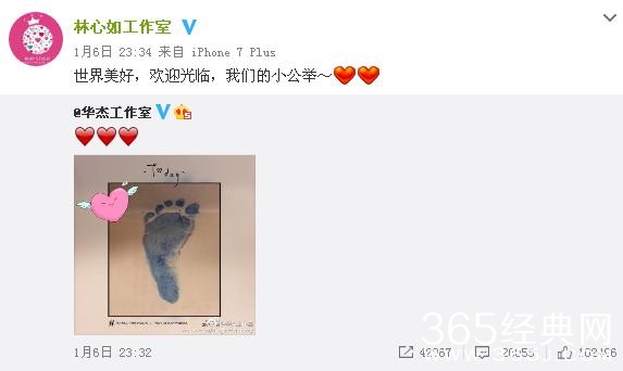 1月6日晚,华杰工作室公布了霍建华跟林心如的宝宝顺利降生的消息,并且贴出宝贝小脚丫的照片,随后林心如工作室转发称:世界美好,欢迎光临,我们的小公举!据悉,小公主的生下来重3.3千克,是个漂亮的女娃娃。