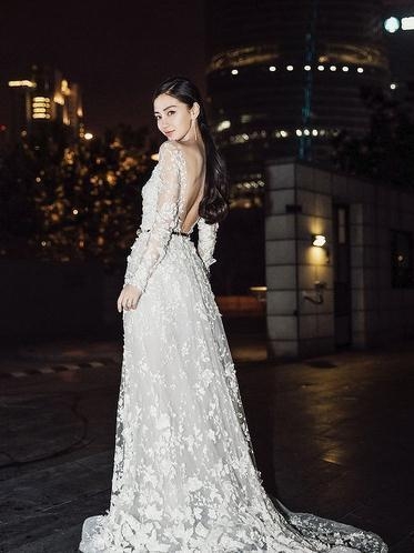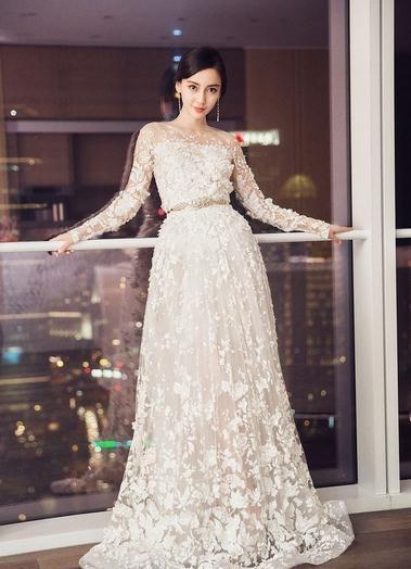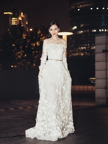 同样是穿长裙的还有anglebaby了,经常的能够在各种活动上看到她身穿优雅的长裙。