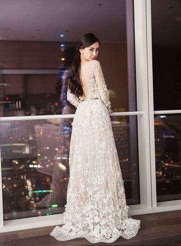 身穿长裙的anglebaby秀起美背也是非常的性感动人,这么看的身材难怪黄晓明会如此的喜欢anglebaby。