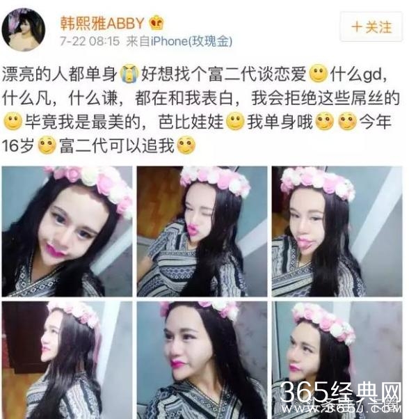 看了韩熙雅的微博更是想哭了,不知道哪个富二代会看上这么美丽的芭比娃娃呢?