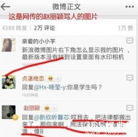 据悉赵丽颖骂杨幂粉丝蠢,连带骂杨幂,网友还放出了赵丽颖骂杨幂微博图片。当时是一个认证过的微博骂“杨幂粉丝果然都是SB。但是细心的网友经过对比,发现其实这是高仿号,并不是赵丽颖本人,就连头像那个认证过的V字都是图片里面的,而不是微博认证的。