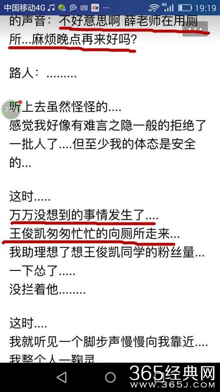 不得不上厕所的薛之谦只能让助理在厕所门口把门,助理也只能厚着脸皮把一个个学生“赶走”:不好意思,薛老师在上厕所……但是不料人气爆棚的王俊凯来上厕所了!助理没有拦!