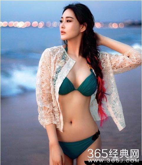 张馨予海滩上穿着比基尼,披着白色披肩,披头散发,性感妩媚!