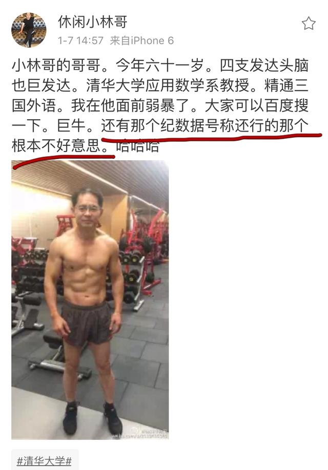 果然在休闲小林哥的微博上,找到这位教授的腹肌