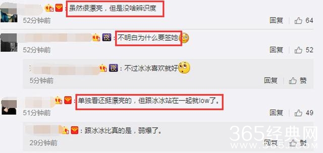 不过却有不少的网友和冰冰粉丝表示,“虽然很漂亮,但是没啥辨识度”,“单独看还挺漂亮的,但跟冰冰站在一起就low了”,“跟冰冰比真的是,弱爆了”。