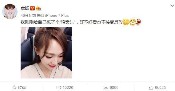 今天唐嫣还很开心的梳鸡窝头,心情大好,估计跟快结婚了有关系,毕竟和爱人在一起还是幸福激动的。