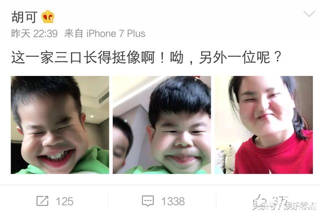 昨晚胡可带着安吉,小鱼儿拍了几张搞怪照片,称一家三口长的挺像啊,另一位呢!