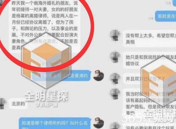 近日,有网友爆料说他的一个朋友是从事海外婚礼工作的,就在今年中旬,这个朋友接待了一对新人,而其中新娘的好朋友正是给杨幂办理离婚手续的律师。