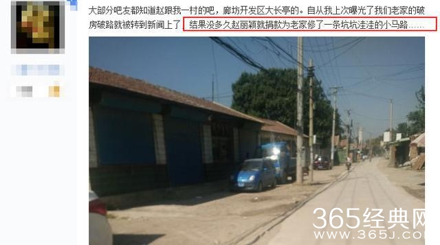 然而对赵丽颖的善举,老乡却似乎并不领情,有人还上网吐槽赵丽颖修的路太烂,形容修的路坑坑洼洼的,一时间引起热议。其实这路面已经很好了,而且赵丽颖出的是钱,真正动工修路的是施工方吧。但是这种爱心却被同村人吐槽有点难过啊!不得不说赵丽颖太无辜了。