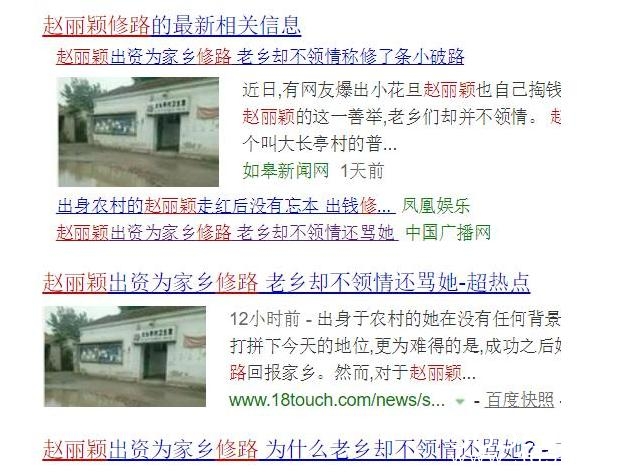 可没过多久就有老乡在网上嫌弃赵丽颖的路修的坑坑洼洼的,是豆腐渣工程。exo me?这让我想起朱之文出名后为村里修路,村民也不领情,更有人直言他应没人送一台轿车再加一万块钱才行。。所以是怪明星小气咯?人家钱也不是大风刮来的