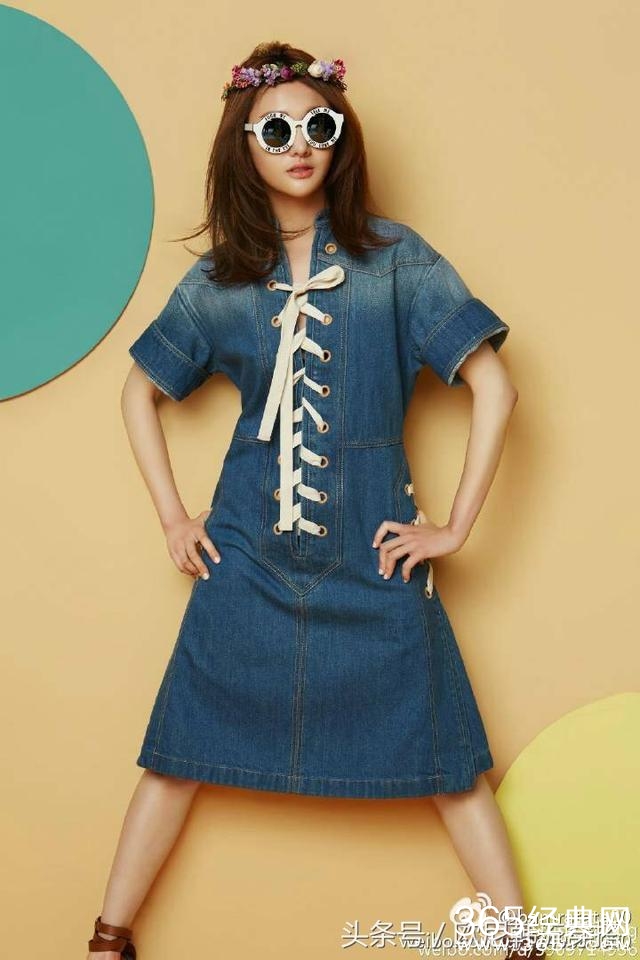 这大眼镜戴得非常的搞怪,牛仔长裙也是今年的流行款,郑爽看起来心情不错啊。