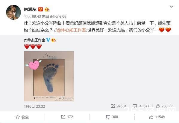 又一个星二诞生了,女神林心如生女在娱乐圈也是件大喜事,圈内很多明星纷纷前来道贺,在微博底下或者微博转发评论祝福。